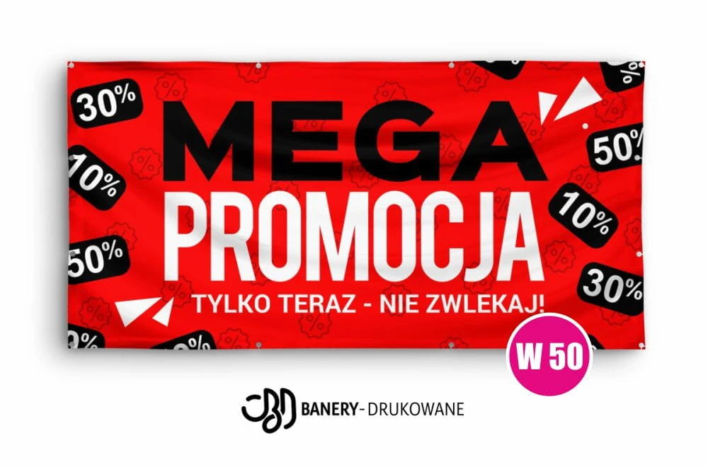 Idealny do oznaczenia mega wyprzedaży, promocji -30%, -50%, -70%, outletu, sezonowych obniżek oraz końcówek kolekcji, baner reklamowy ‘Wyprzedaż’ stanowi niezbędny element skutecznej komunikacji marketingowej. To praktyczne i ekonomiczne rozwiązanie, które realnie wpływa na wzrost zainteresowania ofertą i sprzedaż w każdym punkcie handlowym.