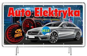 Baner reklamowy ‘Auto Elektryka’ to profesjonalny nośnik reklamy stworzony z myślą o skutecznej promocji usług elektryki samochodowej, diagnostyki układów elektrycznych, naprawy instalacji, wymiany akumulatorów, montażu alternatorów i sterowników elektronicznych w warsztatach samochodowych i punktach mobilnych. Wysokiej jakości baner auto elektryka wykonany z trwałego materiału i z wyraźnym, odpornym na warunki atmosferyczne nadrukiem doskonale sprawdza się zarówno na zewnątrz, jak i wewnątrz budynków, zwiększając widoczność serwisu i przyciągając kierowców szukających profesjonalnej obsługi pojazdów elektrycznych i konwencjonalnych.
