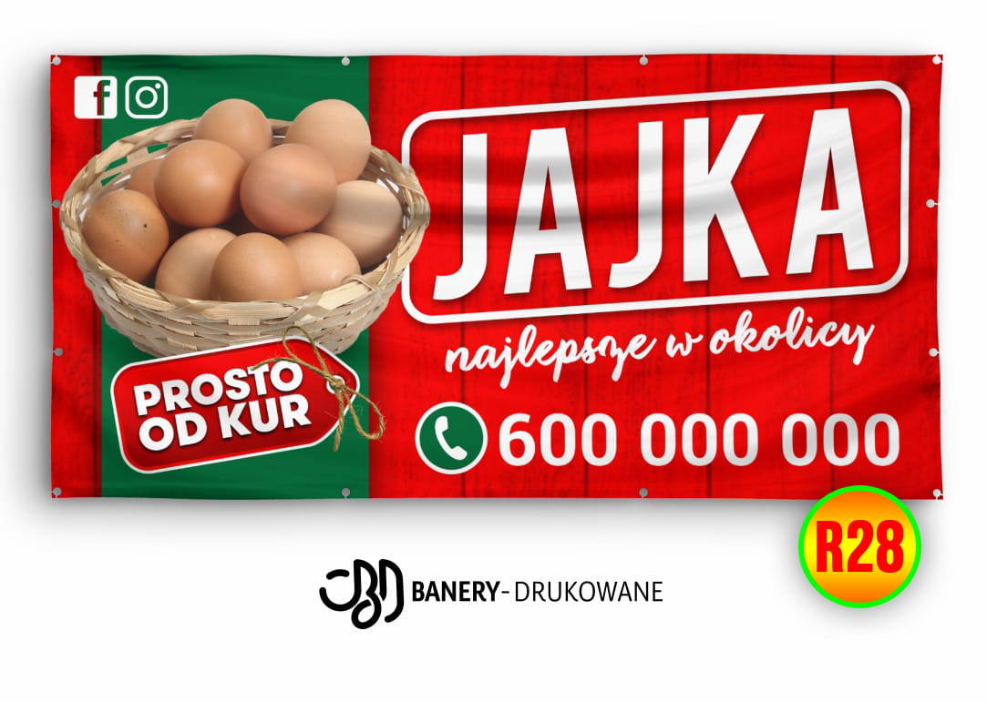 Zainwestuj w baner reklamowy Sprzedawcy jajek – trwały, efektowny i gotowy do montażu, który skutecznie zwiększa sprzedaż i przyciąga uwagę klientów.