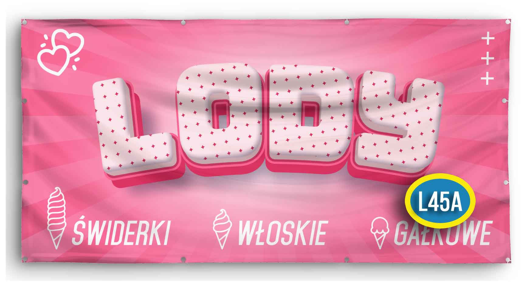 Dzięki zastosowaniu baneru na lody, Twój punkt sprzedaży staje się bardziej widoczny, a klienci od razu wiedzą, gdzie mogą kupić lody gałkowe, lody włoskie lub naturalne sorbety. Baner buduje pozytywne skojarzenia z letnim smakiem, ochłodą i przyjemnością.