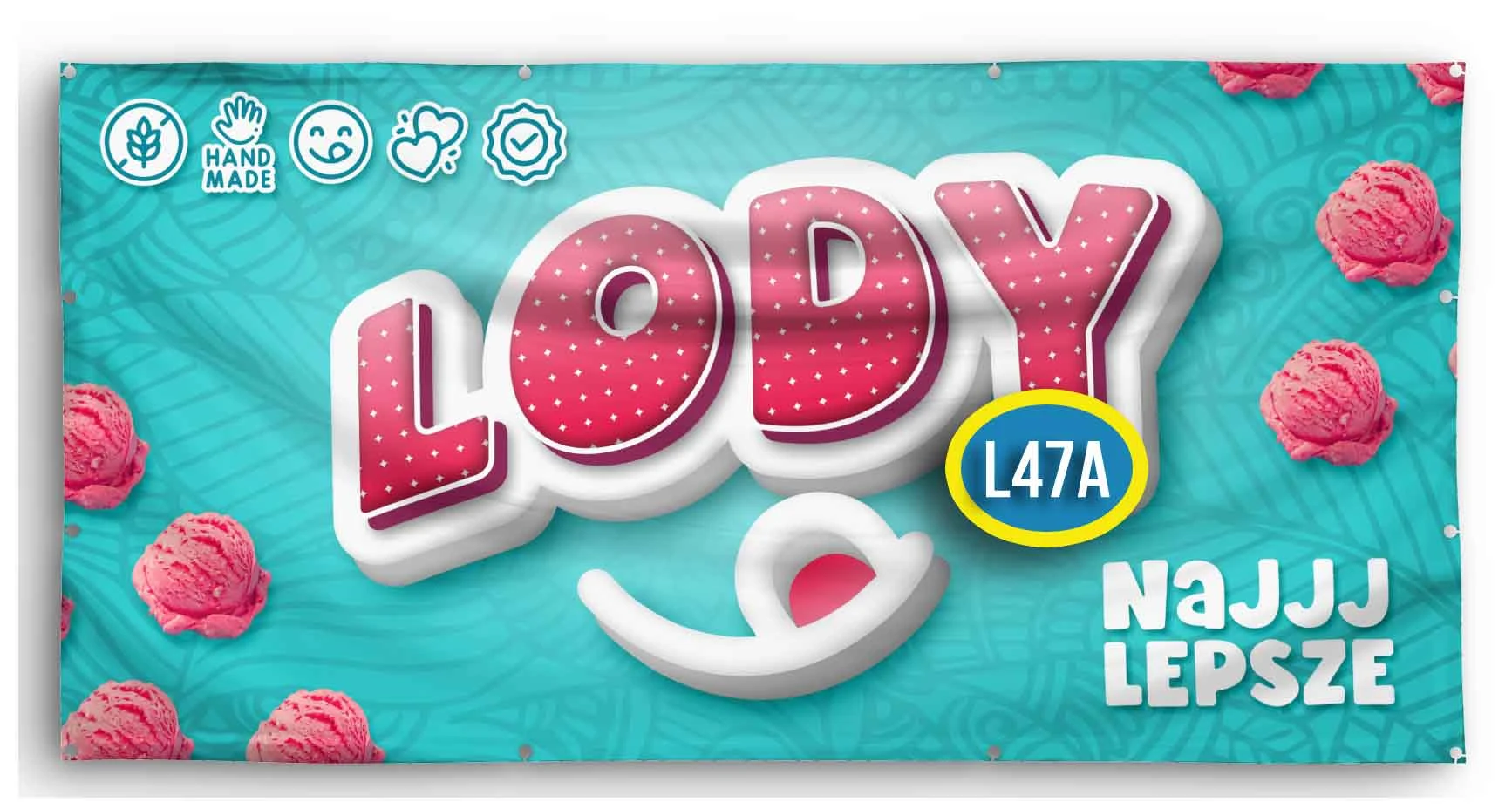Baner reklamowy lody jest trwały, odporny na warunki atmosferyczne i idealnie sprawdzi się jako reklama zewnętrzna przez cały sezon letni. Wybierając baner do lodziarni, inwestujesz w skuteczną promocję, która realnie zwiększa zainteresowanie ofertą i sprzedaż lodów.