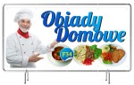 Baner ‘Obiady Domowe’ pozwala w prosty sposób oznaczyć lokal i promować zupy, dania główne, dodatki obiadowe, zestawy lunchowe, posiłki na wynos oraz catering dla firm i osób prywatnych. To skuteczne narzędzie marketingowe dla restauracji, barów obiadowych i punktów serwujących domowe dania, które realnie zwiększa liczbę klientów oraz rozpoznawalność marki.