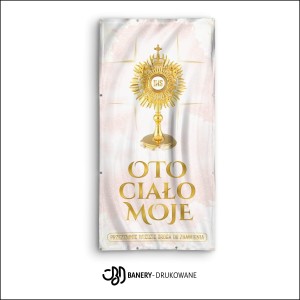 Elegancki baner dekoracyjny na Święto Bożego Ciała to wyjątkowa forma podkreślenia religijnego charakteru tej uroczystości. Doskonale sprawdzi się jako dekoracja okna, ogrodzenia, balkonu, płotu lub ołtarza polowego, tworząc godną i estetyczną oprawę procesji eucharystycznej.