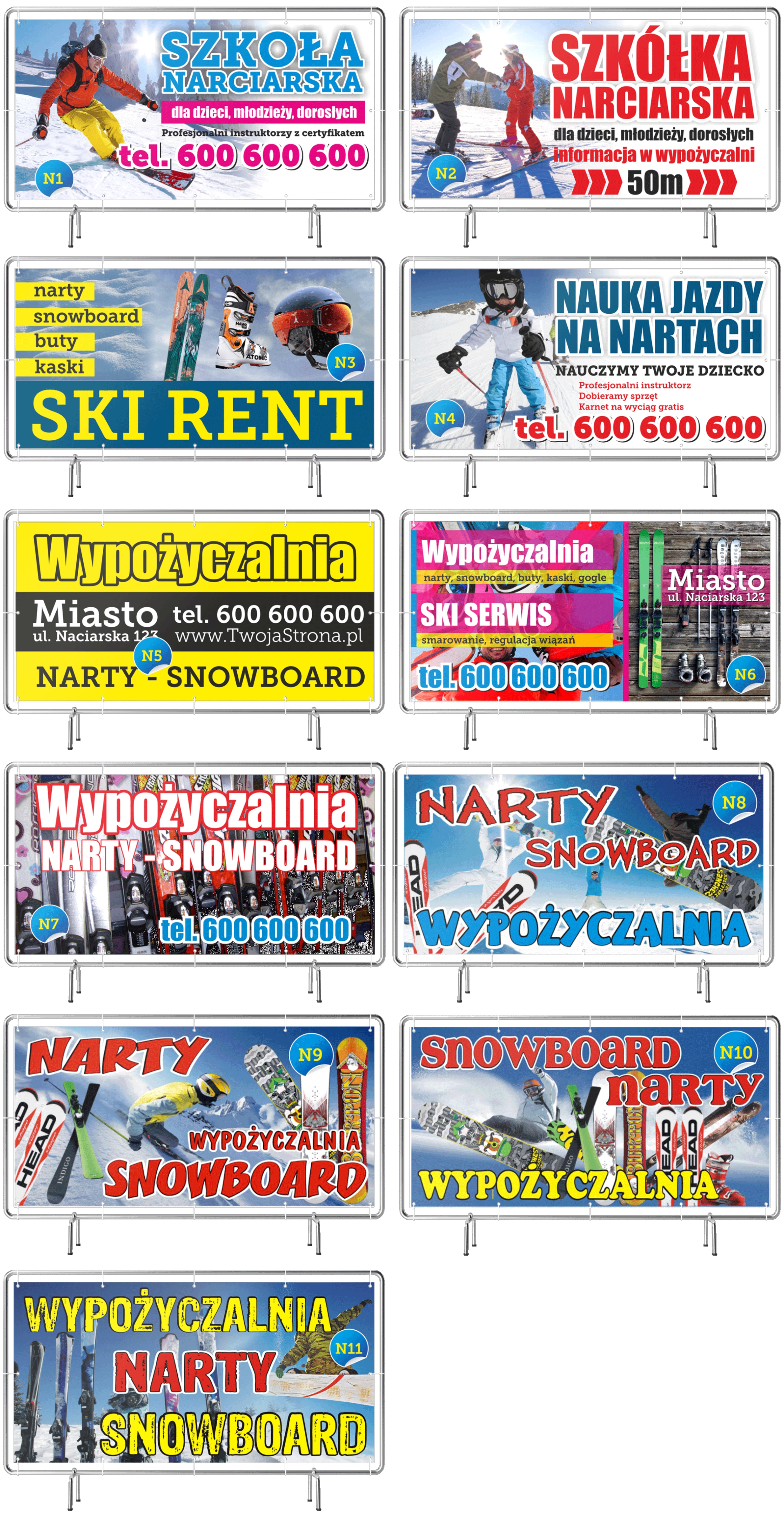 Szukasz skutecznego baneru reklamowego dla szkoły narciarskiej i wypożyczalni sprzętu zimowego, który przyciągnie turystów i zwiększy liczbę klientów? Nasz baner szkoła narciarska i wypożyczalnia sprzętu to idealne rozwiązanie dla ośrodków narciarskich, szkół snowboardowych oraz punktów oferujących wypożyczalnię nart, snowboardów, butów narciarskich i kasków. Czytelna grafika i wyraźny przekaz przyciągają wzrok gości, którzy szukają sprzętu lub kursów narciarskich.