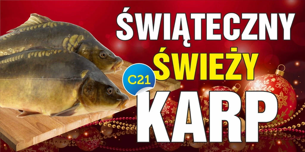 Szukasz skutecznego baneru reklamowego do sprzedaży karpia, który przyciągnie klientów w sezonie świątecznym i zwiększy sprzedaż? Nasz baner sprzedaż karpia to idealne rozwiązanie dla gospodarstw rybnych, hodowców, targowisk oraz punktów oferujących karpia żywego, karpia świeżego, ryby na Wigilię oraz inne ryby słodkowodne. Czytelna grafika i wyraźny komunikat sprawiają, że klienci od razu wiedzą, gdzie kupić świeżą rybę.