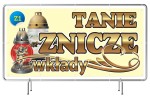 Baner reklamowy ‘Znicze i wkłady do zniczy’ to profesjonalny baner wykonany z trwałego materiału i z wyraźnym, wysokiej jakości nadrukiem, który skutecznie przyciąga uwagę klientów i wyróżnia ofertę sprzedaży zniczy i wkładów cmentarnych. Idealny do promocji zniczy, wkładów do zniczy, akcesoriów cmentarnych i dekoracji nagrobnych w sklepach, kioskach, hurtowniach i punktach sprzedaży sezonowej.