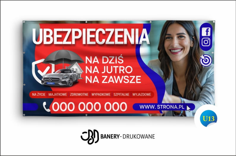 Dzięki zastosowaniu baneru dla agencji ubezpieczeniowej, Twój biznes staje się bardziej widoczny, a klienci wiedzą, gdzie zawrzeć ubezpieczenie samochodu, mieszkania, domu, życia lub działalności gospodarczej. Baner buduje profesjonalny wizerunek marki i zwiększa liczbę zapytań ofertowych.