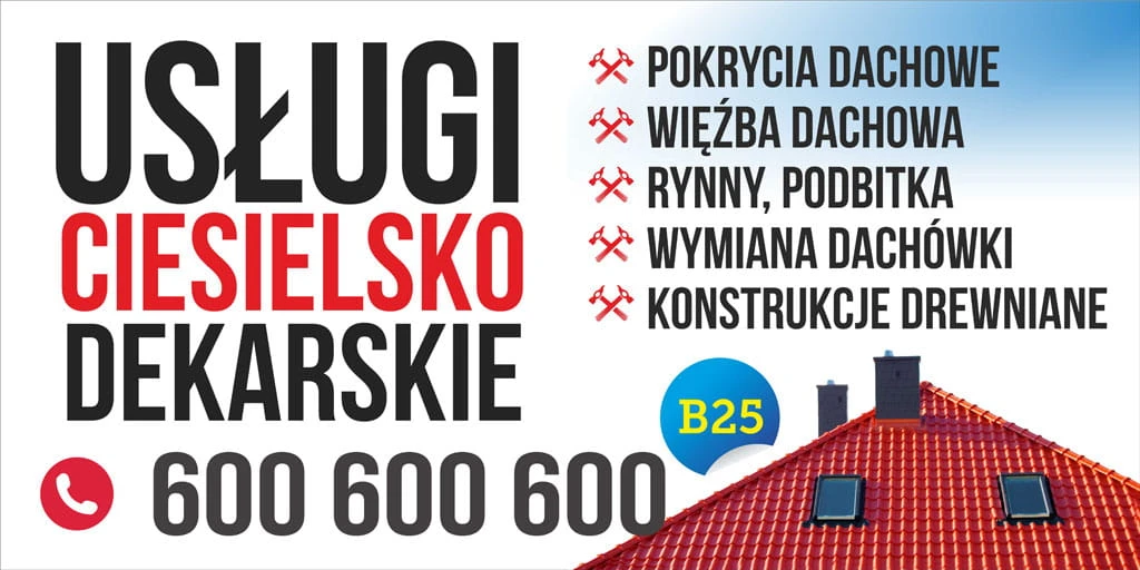 Baner Reklamowy Usługi Ciesielsko Dekarskie, Pokrycia Dachowe Kontrukcje Drewniane, Baner Dekarz
