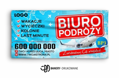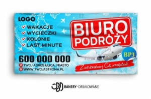 Baner biuro podróży jest trwały, odporny na warunki atmosferyczne i idealny do ekspozycji zewnętrznej i wewnętrznej. Wybierając baner reklamowy turystyka, inwestujesz w skuteczną promocję usług turystycznych przez cały rok.