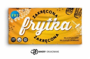 Baner zakręcona frytka jest trwały, odporny na warunki atmosferyczne i idealny do ekspozycji zewnętrznej. Wybierając ten baner, inwestujesz w skuteczną reklamę street foodu.