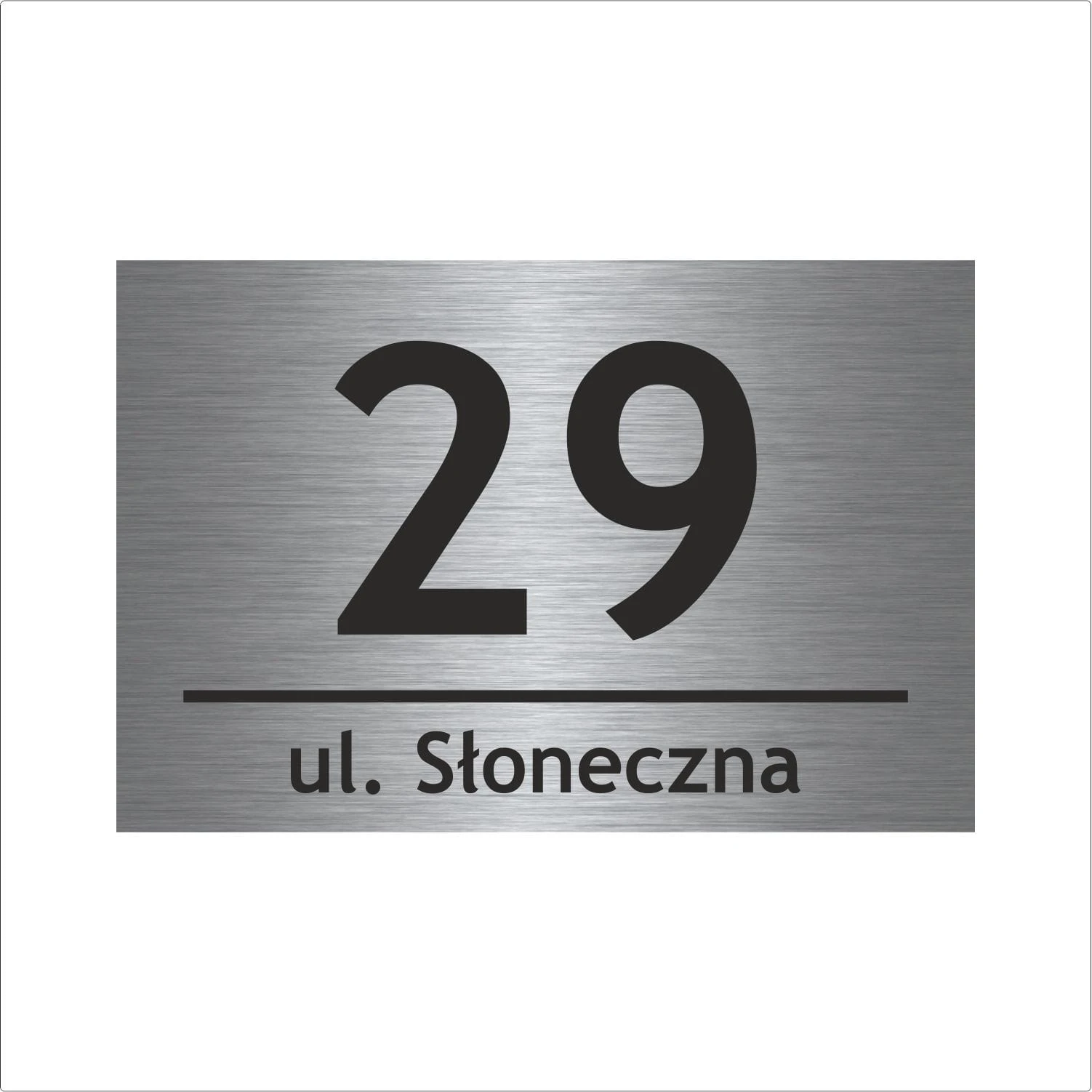 Tabliczka adresowa wykonana z kompozytu aluminiowego DIBOND w wersji szczotkowanej. Wydruk metodą UV zapewnia trwałość i odporność na warunki atmosferyczne, a także zarysowania. To elegancka i funkcjonalna ozdoba, która świetnie sprawdzi się na każdym domu.