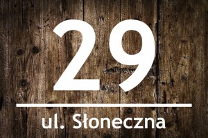 Tabliczka adresowa wykonana z kompozytu aluminiowego DIBOND w wersji Drewno. Wydruk metodą UV zapewnia trwałość i odporność na warunki atmosferyczne, a także zarysowania. To elegancka i funkcjonalna ozdoba, która świetnie sprawdzi się na każdym domu.
